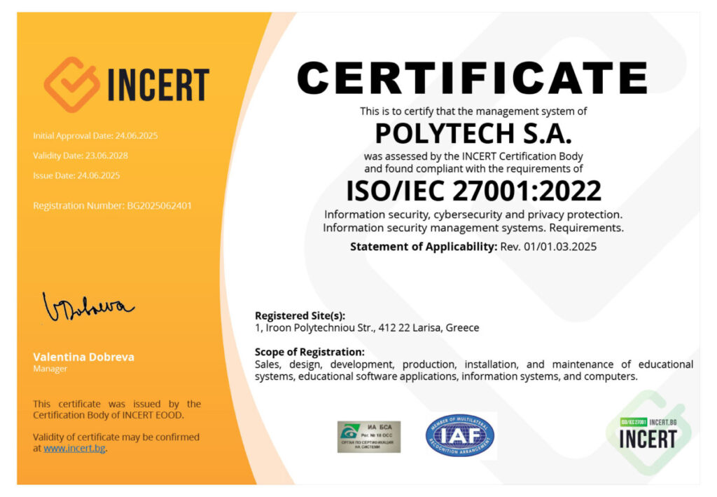 POLYTECH S.A. Achieves ISO 27001 Certification for Information Security