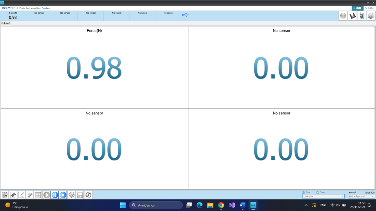 - The Force sensor should be calibrated before each experiment. In order to calibrate the sensor click the calibration button