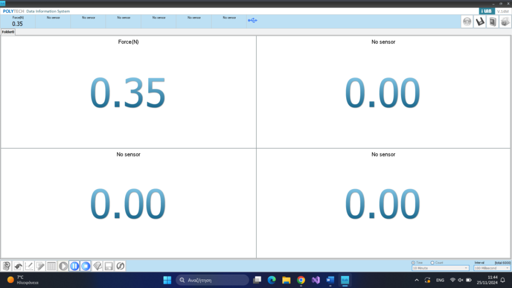 1. Whenever you’re ready click “Start (F6)” to start collecting data with the force sensor on your pc screen.