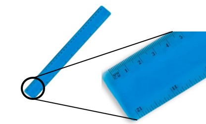 Measurements of less than 30 cm. Features also division in millimeters (mm) where 10 mm = 1 cm