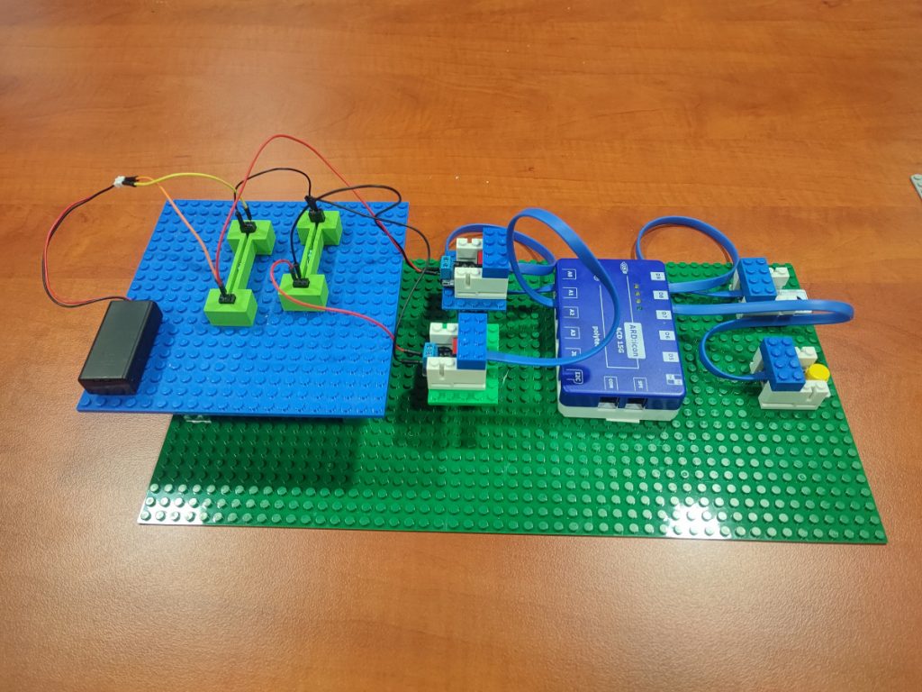 - Use the blocks base to secure the EB:blocks and Resistor blocks in a setup as the one in the photos: