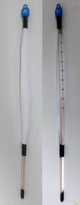 - Prepare a strip of white paper about 1.5 cm wide with sufficient length to cover the scale of the thermometer you use.