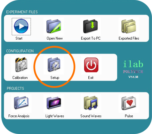 - d. Run the iLab software and in the main menu select «Setup» (pic. 1). Make sure that the “DL100” option is already chosen.(pic. 2)