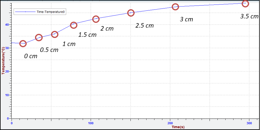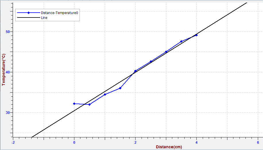 - To create the Distance(cm) – Temperature (°C) graph: