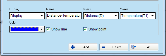 - add the new graph by selecting Distance at x-axis and Temperature at y-axis.