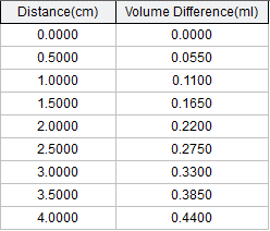 - You know that every measure you made was when the fluid level increased by 0.5 cm. You will therefore introduce a new parameter that reflects the height of the tube in centimeters.